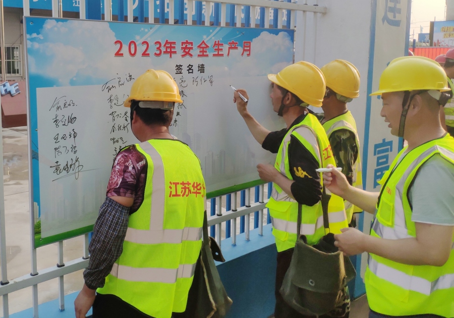 全體工友來到簽名墻,簽下了自己的一份安全承諾。