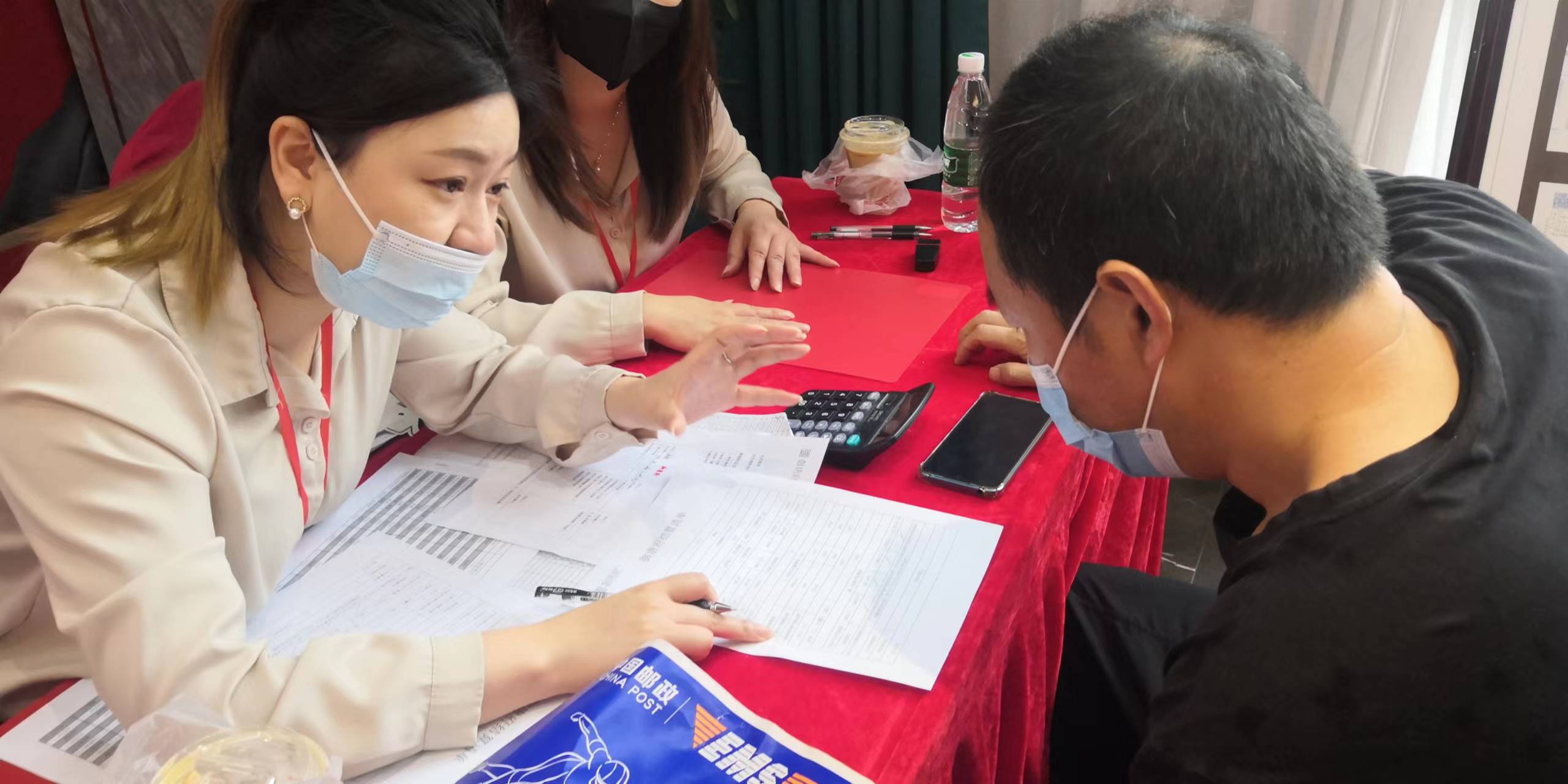 交房手續辦理區鋪設了紅地毯,